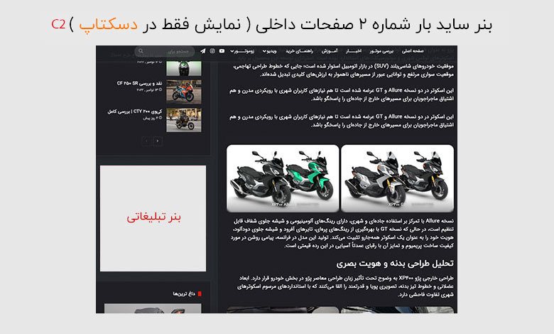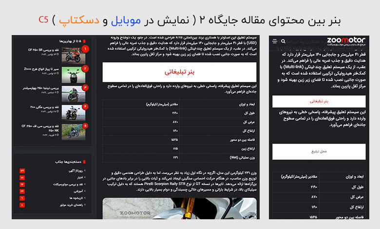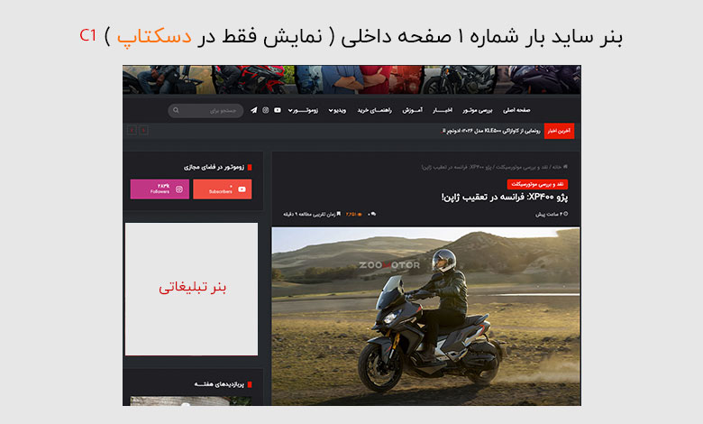 تعرفه های بنرهای سایت زوموتور ( نمایش در صفحات داخلی )