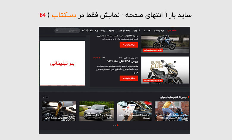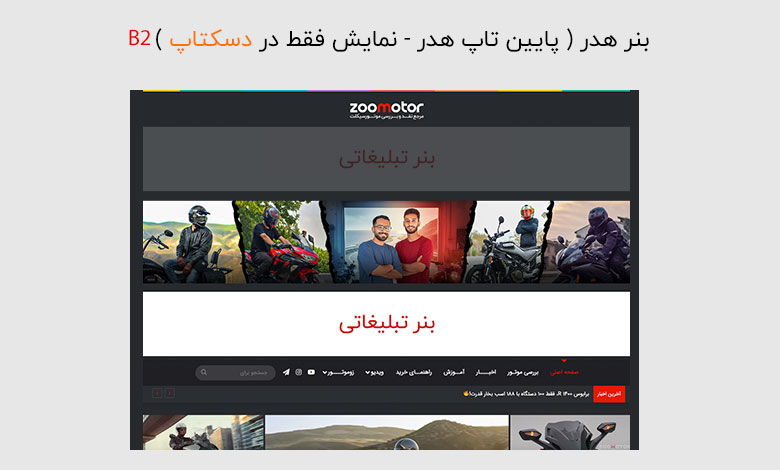 تعرفه های بنرهای سایت زوموتور ( نمایش در تمامی صفحات )